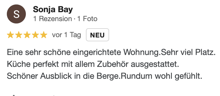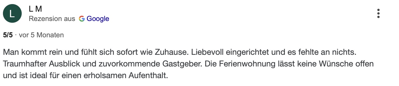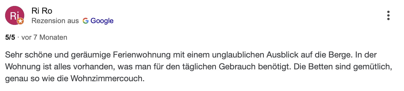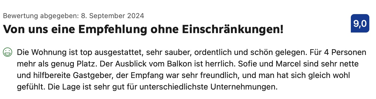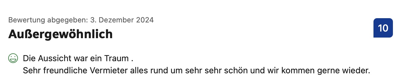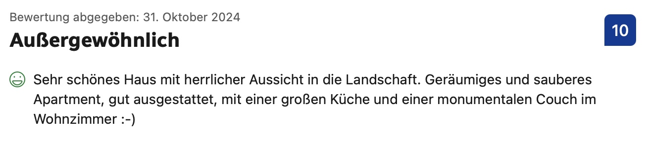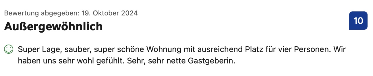 Stöbern Sie durch ein paar Bewertungen von Booking.com, Google oder unserem Gästebuch